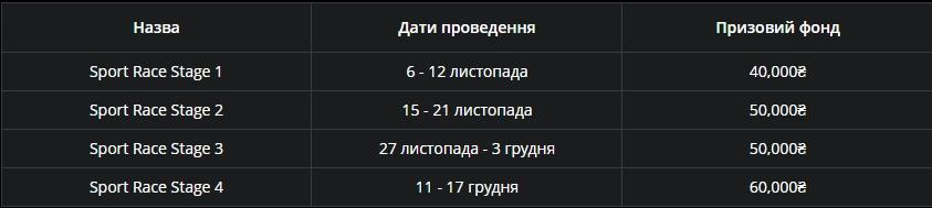 Sport Race фрібети. Клієнтам Покербет доступні фрібети до 200 000 гривень в рамках Pokerbet Festival. Для отримання подарунку потрібно активувати свою участь в акції та робити ставки на події з коефіцієнтами від 1,1 та більше, заробляючи бонусні бали. Як тільки кількість балів стане рівною розміру середньої ставки, гравець отримує фрібет OnlyWin. У 4 залікових періодах розігруватимуться фрібети на великі суми: