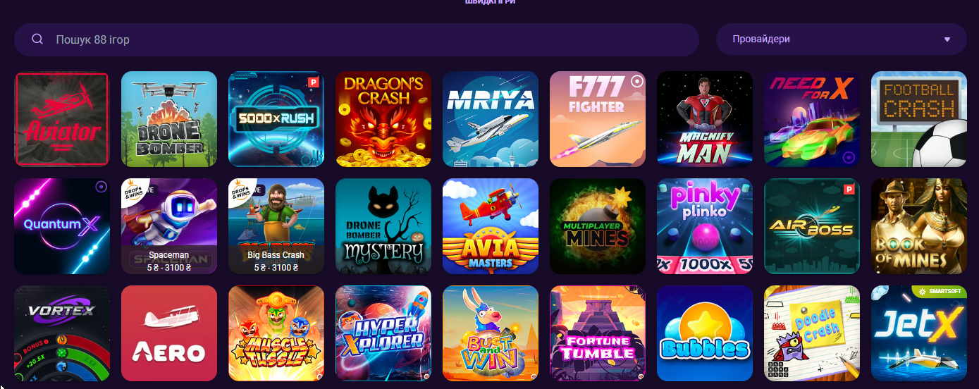 Казино надає користувачам гри від відомих виробників в індустрії гемблінга. Можна грати на ігрових автоматах або відео-слотах, це особистий вибір кожного гравця. Тут ви можете знайти варіанти на будь-який смак і тематику: карти, сімки, фрукти та багато іншого.