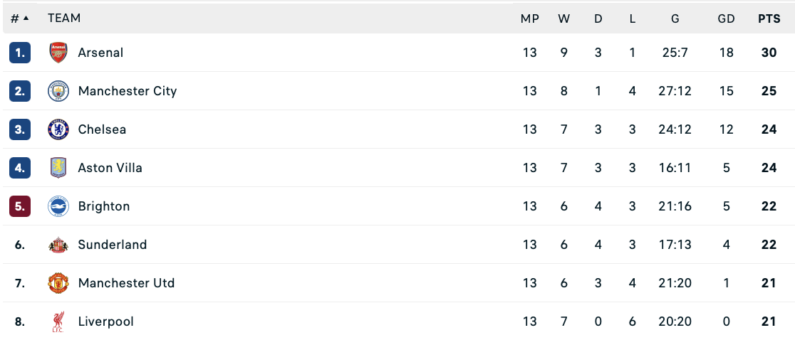 Команда Мікеля Артети тепер має 17 матчів без поразок у всіх турнірах, а Челсі йде третім, відстаючи ще на одне очко.