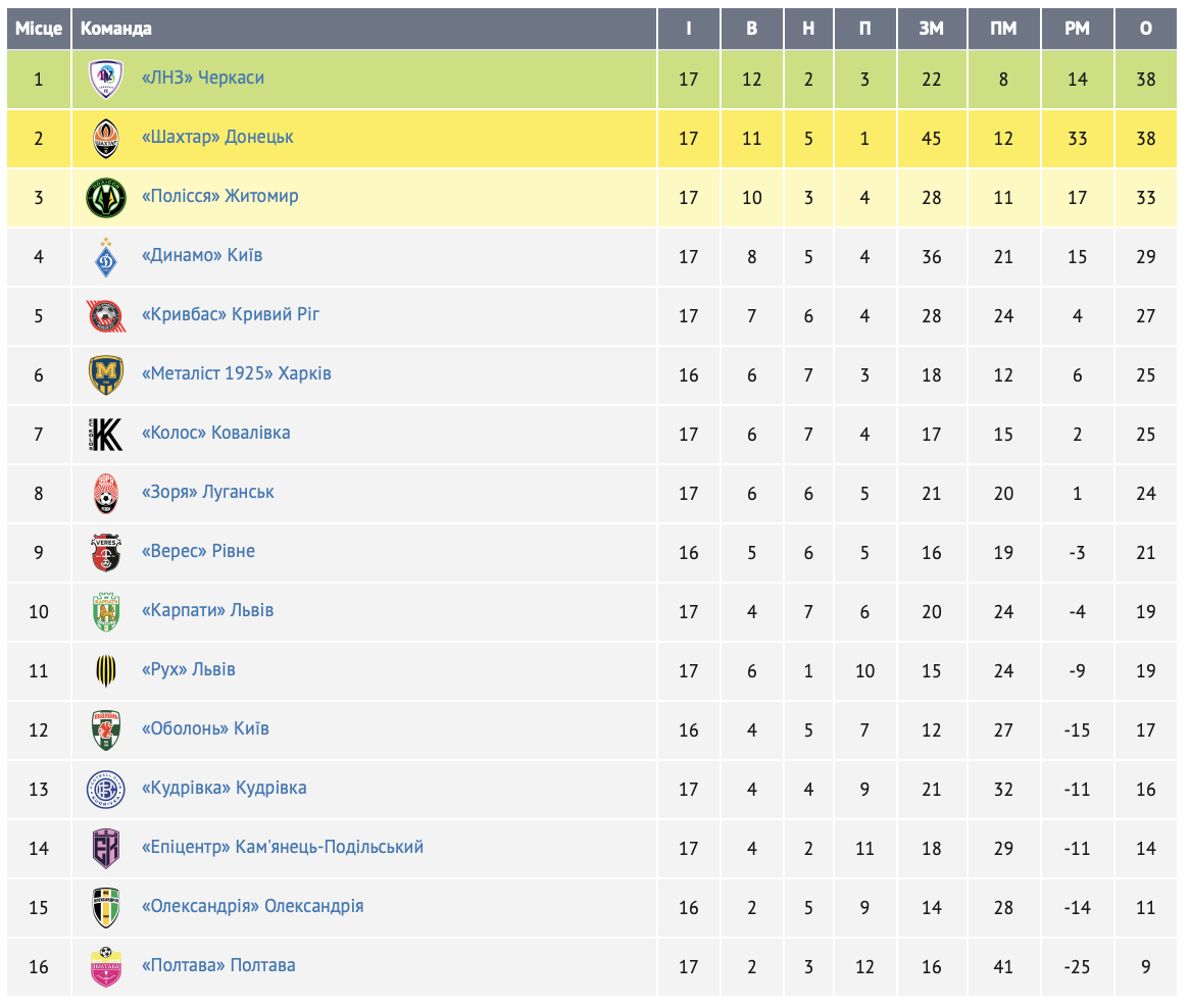 Після 17 проведених матчів турнірна таблиця має такий вигляд: