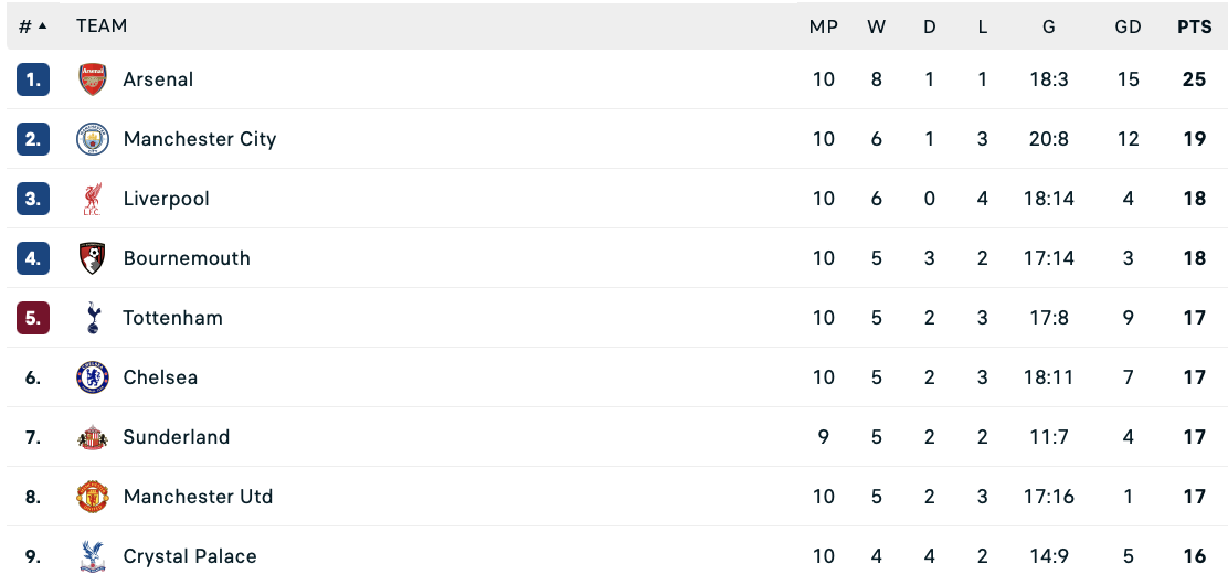 Після цієї перемоги команда набрала 19 очок і піднялася на другу позицію в турнірній таблиці, поступаючись лише лідеру Арсеналу.