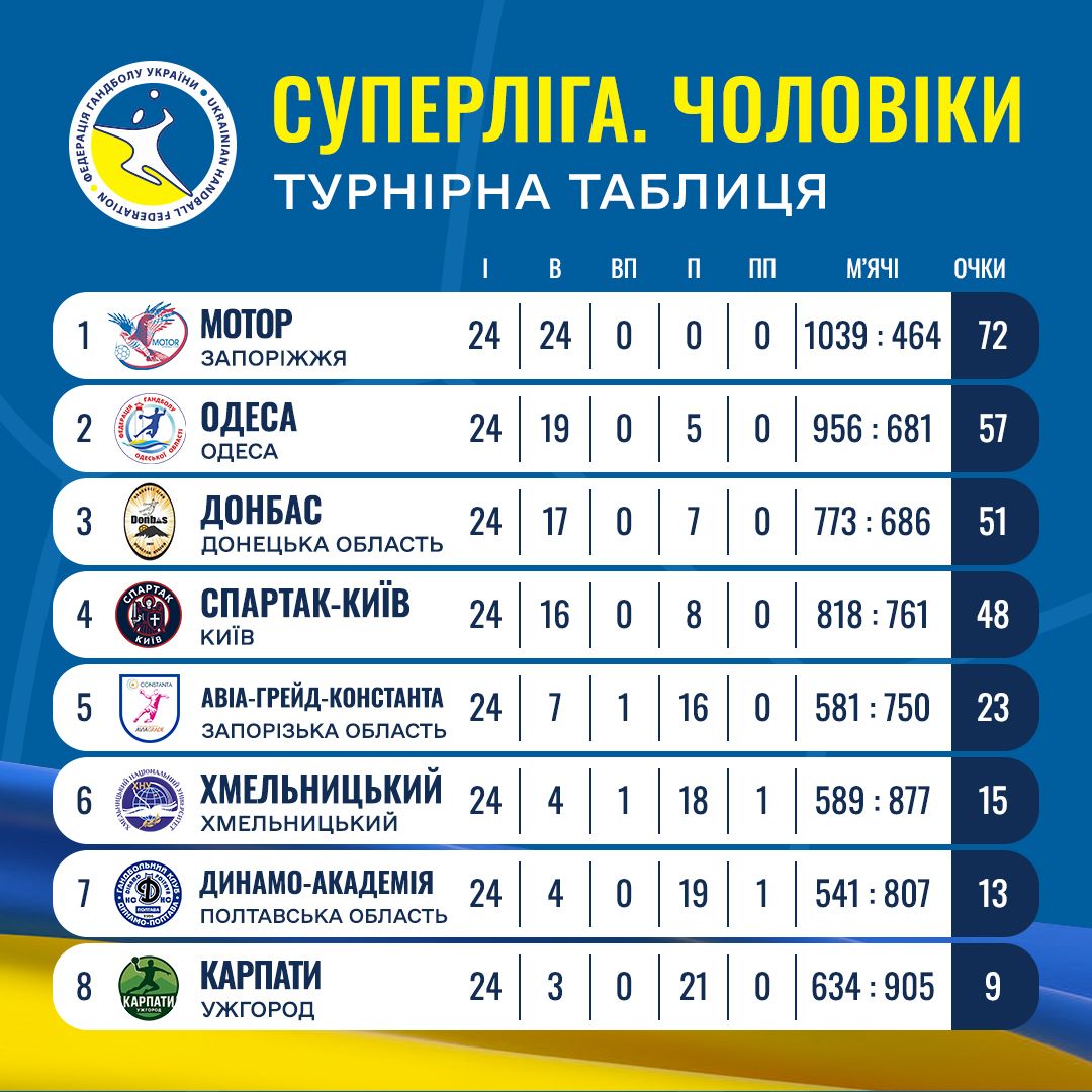 Запорізький Мотор у сезоні 2025/26 продемонстрував абсолютний результат у національній першості, вигравши всі 24 матчі Української Суперліги з гандболу. Команда гарантувала собі чемпіонство за два тури до завершення чемпіонату.