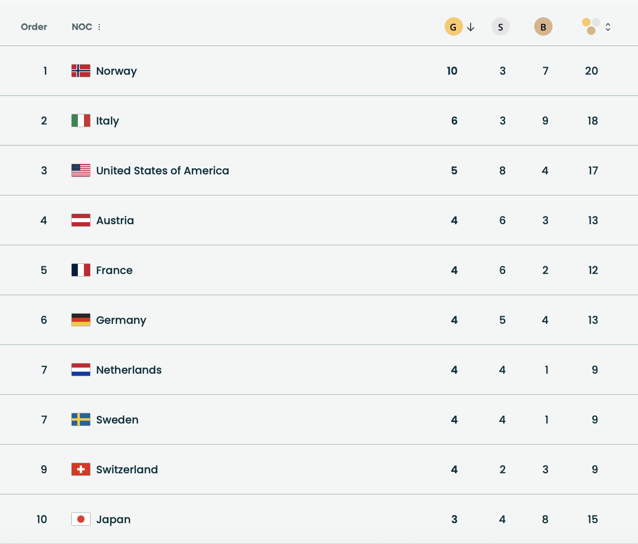 Крім того, норвежці також утримують лідерство за загальною кількістю нагород. У їхньому активі вже 20 медалей різного ґатунку, що є найкращим показником серед усіх учасників Ігор.