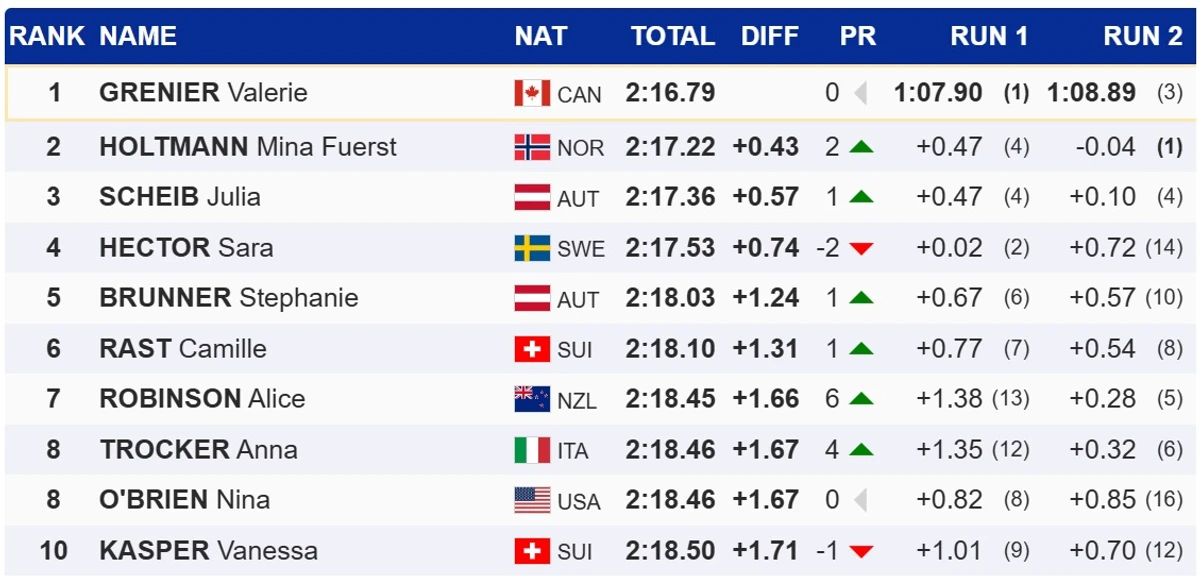 Її головна конкурентка, німкеня Емма Айхер, яка ще зберігала математичні шанси на перемогу, завершила гонку лише на 12-й позиції, остаточно втративши можливість наздогнати американку.