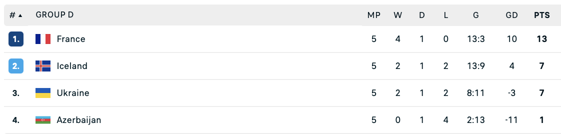 Господарі зуміли гарантувати собі прямий вихід на мундіаль, тоді як українська команда опустилася на третю позицію у групі через гіршу різницю м'ячів порівняно з Ісландією.