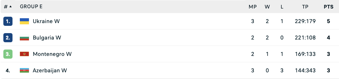 Після трьох матчів Україна очолює турнірну таблицю своєї групи з п’ятьма очками, щоправда, має на один зіграний матч більше за Болгарію та Чорногорію. Вирішальні зустрічі ще попереду.