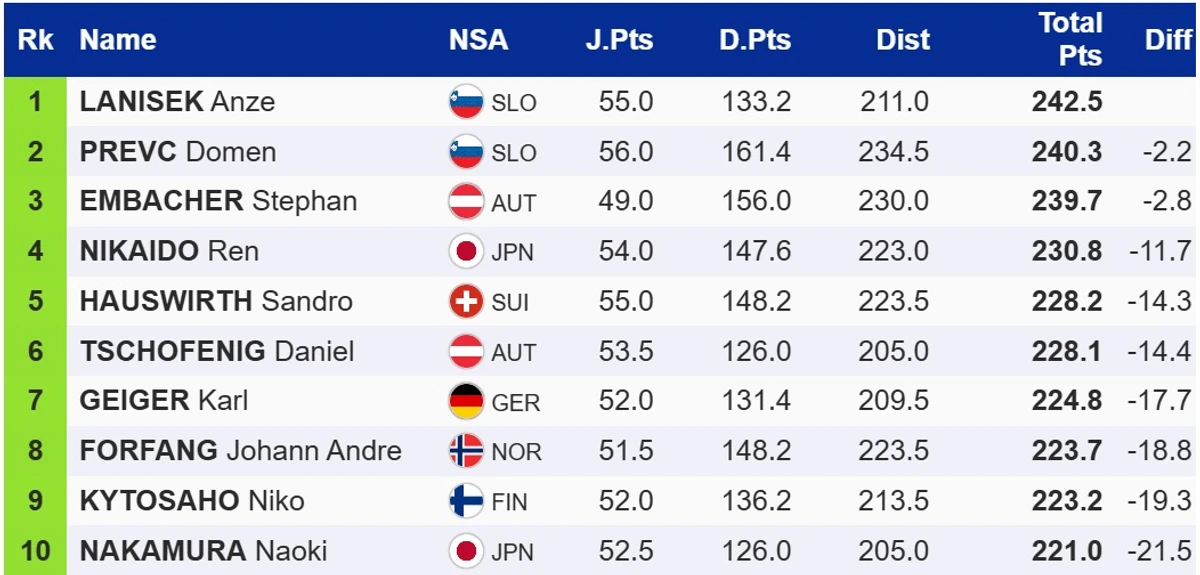 Переможцем кваліфікації став представник Словенії Анже Ланішек, який випередив свого співвітчизника Домена Превца та австрійця Штефана Ембахера.