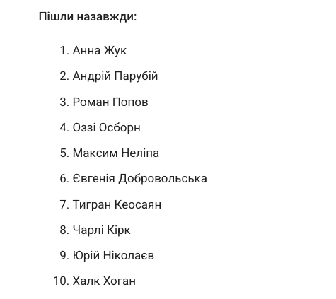 У категорії «відомі люди, що пішли назавжди» десяту позицію посів легендарний реслер та актор Халк Хоган.