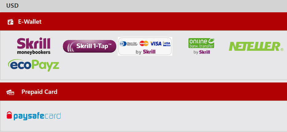 Также клиентам доступно пополнение счета с помощью предоплаченных карт PaySafeCard.
