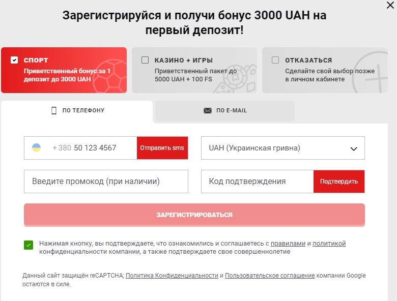 По умолчанию пользователям предложен вариант – по телефону. В первое поле нужно вписать номер телефона, на него придет СМС. Далее игрок выбирает валюту (доступна гривна) и вставляет код подтверждения, полученный в СМС. Есть возможность активировать промокод BET2FUN, который позволит получить дополнительные бонусы.