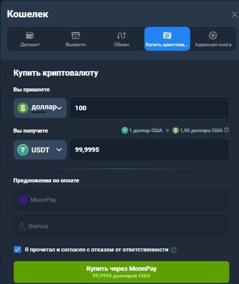 В платежном разделе игрокам доступно пополнение в гривнах, евро, долларах и других валютах с банковских карт. Минимальная сумма пополнения – 300 гривен, максимальная – 149 000 грн. Также доступно пополнение в криптовалюте – USDT и BTC. Пополнять криптой следует на указанный на сайте адрес.