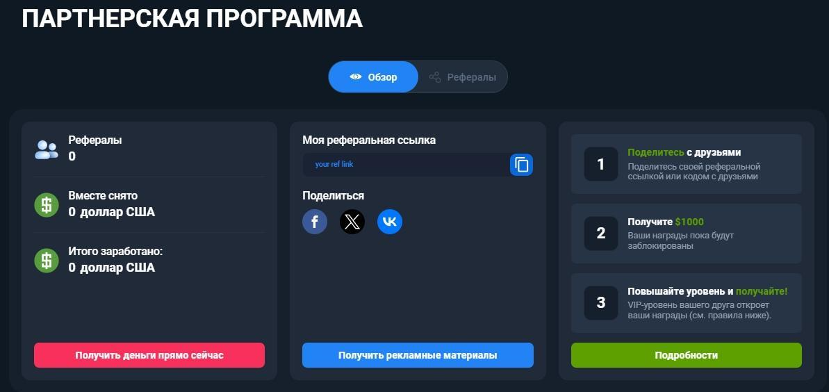 Примечательно, что процент от ставок игрока партнеры получают независимо от исхода ставки.