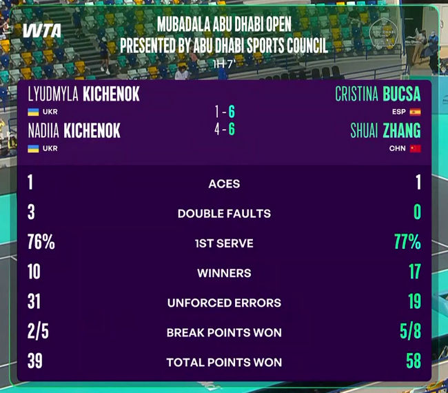 Украинский дуэт Людмилы и Надежды Киченок прекратил борьбу на турнире WTA 500 в Абу-Даби, уступив уже старт соревнований.