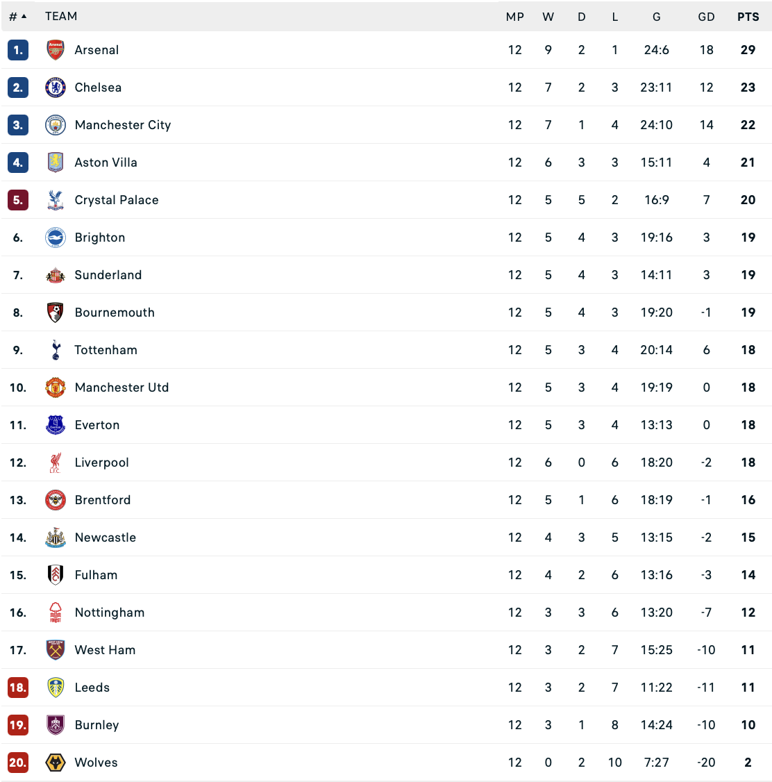 Благодаря победе Эвертон набрал 18 очков и сравнялся с Манчестер Юнайтед в турнирной таблице на границе топ-10.
