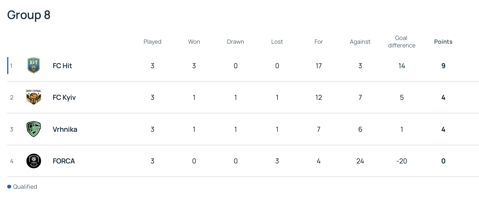 Тем временем другой украинский клуб Киев Футзал завершил свое выступление в турнире яркой победой, разгромив северомакедонскую Форсу со счетом 10:0.