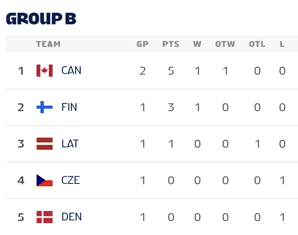 После двух туров Канада лидирует в группе B с пятью очками, а Латвия вновь показала, что способна навязать борьбу фаворитам.