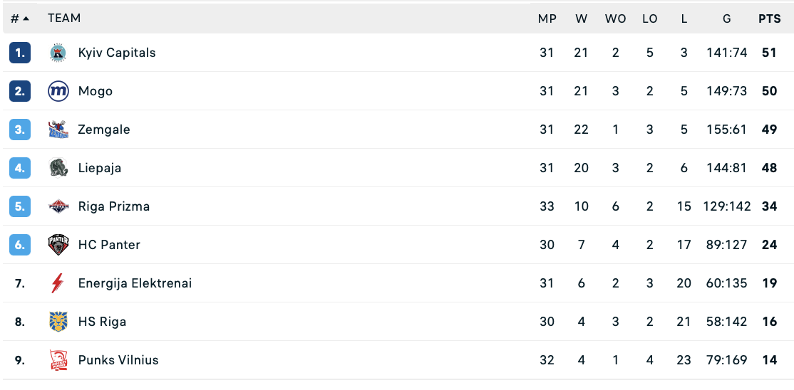 Эта победа позволила Киев Кэпиталз набрать 51 очко и подняться на первое место. Мого занимает вторую позицию, уступая один балл. 14 февраля киевляне сыграют дома против Земгале.