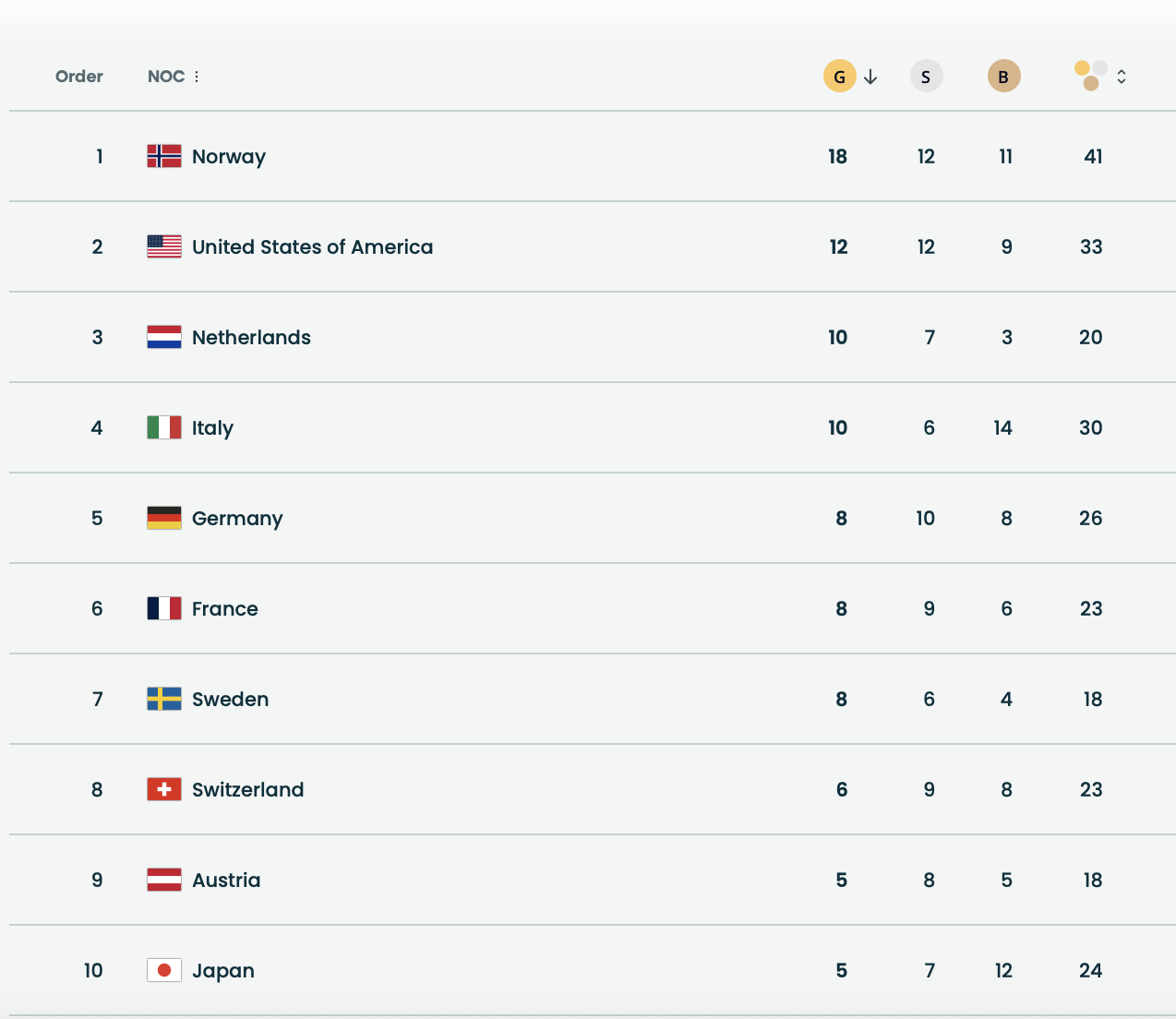 Норвегия вновь стала лидером медального зачета зимних Олимпийских игр-2026. Для норвежской сборной это уже четвертая подряд победа в общем зачете.