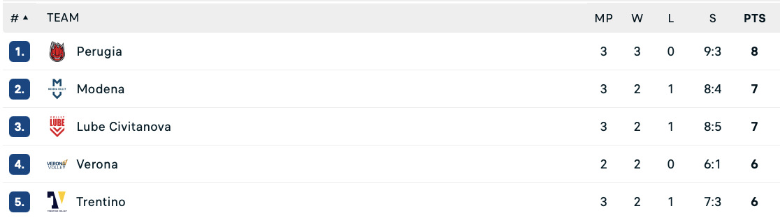 Перуджа уверенно победила соперника со счетом 3:0 (25:15, 25:16, 25:21) и записала на свій рахунок третью победу подряд.