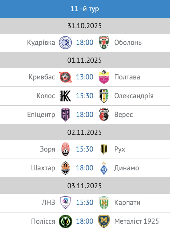 В пятницу, 31 октября, матчем между Кудривкой и Оболонью начнётся 11-й тур Украинской Премьер-лиги. Обе команды потерпели крупные поражения в предыдущем туре и теперь стремятся вернуть уверенность и набрать важные очки, чтобы укрепить позиции вдали от зоны стыковых матчей.