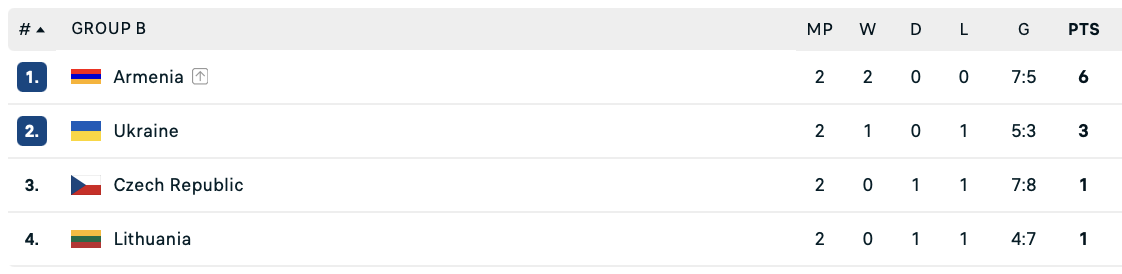 В другом поединке группы сборная Армении в результативном матче обыграла Чехию со счетом 5:4 и досрочно гарантировала себе место в плей-офф.