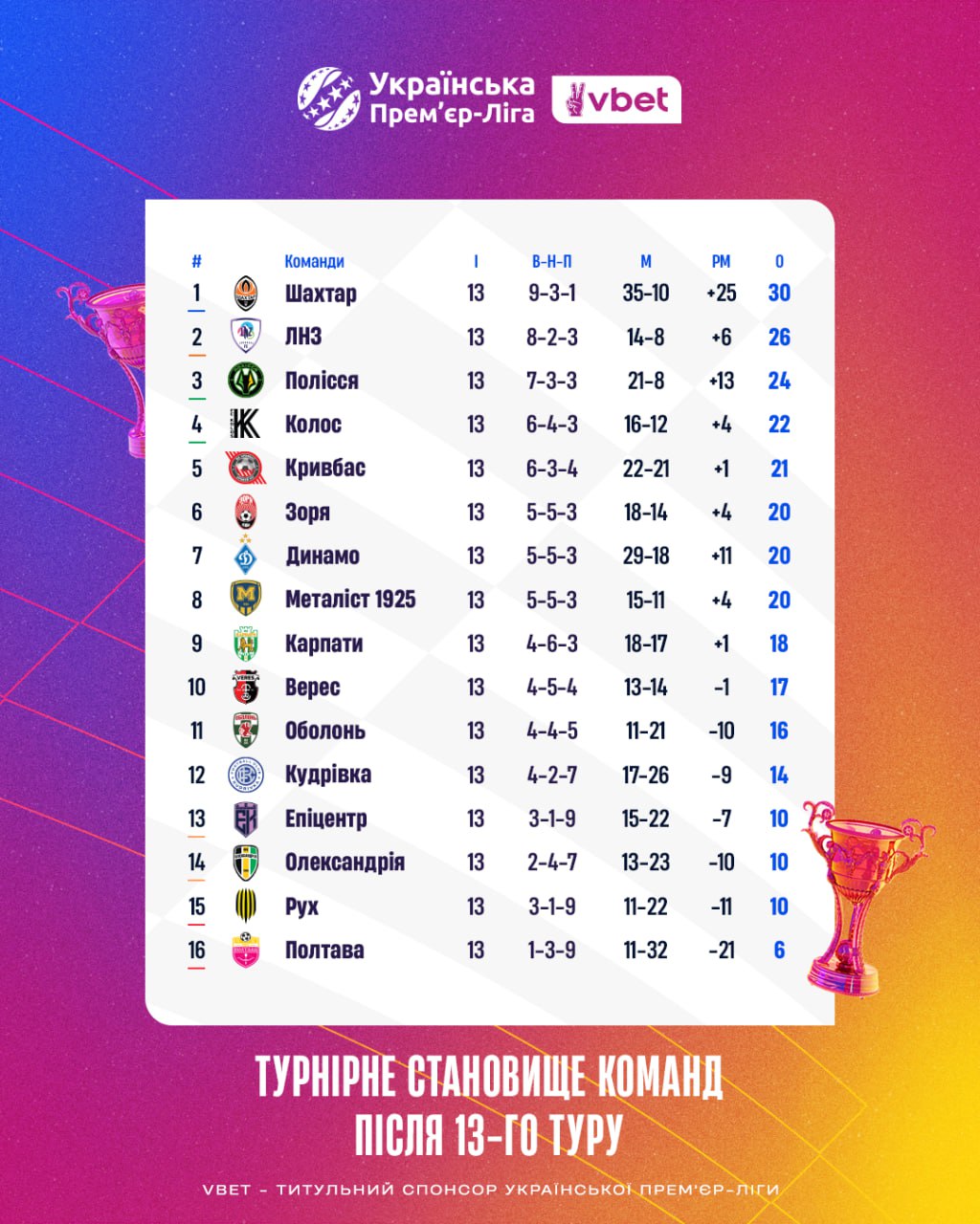 Заря под руководством Виктора Скрипника сыграла 20-ю ничью в УПЛ і продлила свою беспроигрышную серию до семи встреч – 3 победы и 4 ничьи. Коллектив набрал 20 очков и обошел в таблице Динамо и Металлист 1925 благодаря дополнительным показателям.
