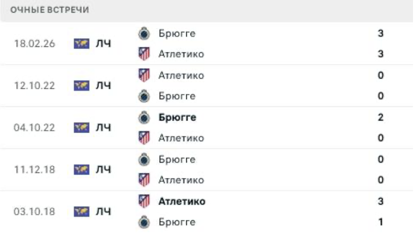 Первая встреча в Бельгии завершилась результативной ничьей 3:3, но этот счет больше отражает количество ошибок, чем качество обороны. Атлетико дважды терял концентрацию после забитых мячей, допускал позиционные провалы между центральными защитниками и оставлял слишком много пространства для ударов со второй линии. Особенно заметны проблемы при стандартах и быстрых фланговых атаках соперника — именно после таких эпизодов возникли ключевые моменты у ворот мадридцев и Брюгге легко находил зоны для ударов.