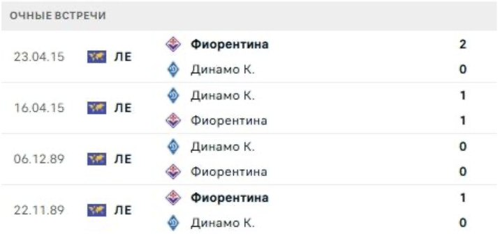 Клубы встречались 4 раза и дважды побеждала Фиорентина, ни разу – Динамо.