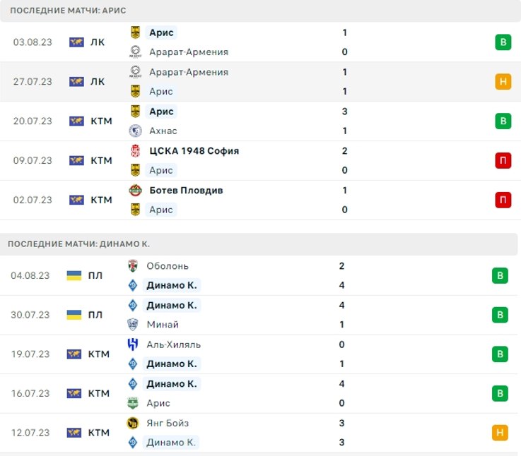 Киевляне много забивают в начале сезона. Мощная линия полузащиты с Буяльским, Шапаренко, Ярмоленко, Сидорчуком и забивной форвард Ванат обеспечили уверенные победы на старте. «Арис» много пропускал, поэтому ставим на ТБ (1,5) «Динамо» с коэффициентом 2,26 в БК Vbet.