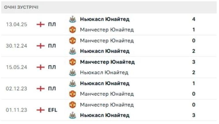 У попередніх 5 очних матчах Ньюкасл виграв 4 рази, а Манчестер лише 1 раз.